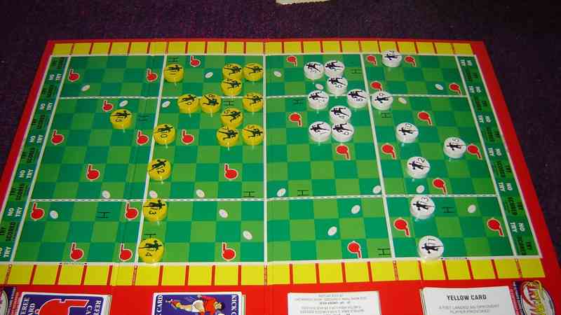 Different pieces have slightly different rules, so the fullback may move sideways (to block an opponent), while a winger may move double on certain turns. There are also spaces which bring into play referee and kicking cards to add additional options.