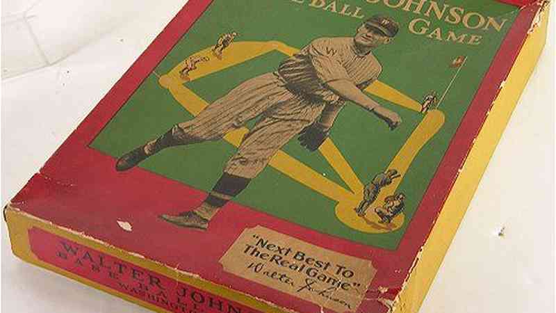 An early baseball game featuring Washington Senator Walter "Big Train" Johnson. Interaction is at a low point here, as defense is played on offense. The player who is at bat, spins a teetotum with various play results engraved on each side. Whatever the result on the spinner, is the result on the field. Play nine innings and rack up the score.