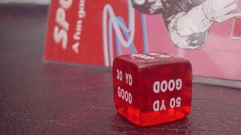 Dice game of American football. Features 1 kicking die; 2 offense dice (1 run; 1 pass); 2 defense dice (1 run defense; 1 pass defense). Players roll off to determine results of plays, keeping track of field position mentally or on paper. Follows rules of football.