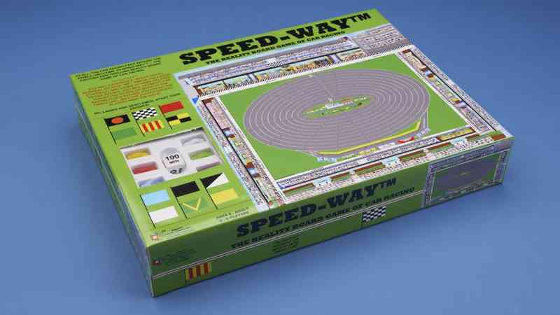 Speed-Way is the reality board game of car racing. It is a game for 2 - 6 players, and Ages 8 - Adult. The race arena is set in a 28" by 19" game board with its graphic details showing: Track lanes, Spectators, Maintenance Pits, Ticket windows, Parking lots, Repair garages, Safety fences, Race Flags, Food stores, Restrooms, and other elements of a sport racing arena.