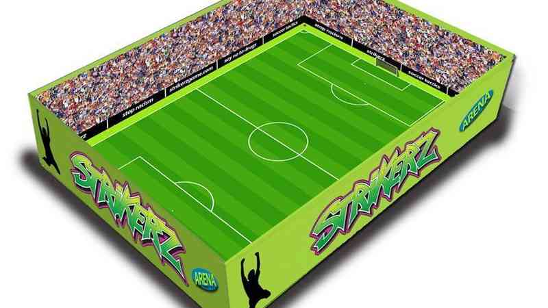 StrikerZ is a light and fast soccer game, with the bottom of the box serving as the playing arena.
