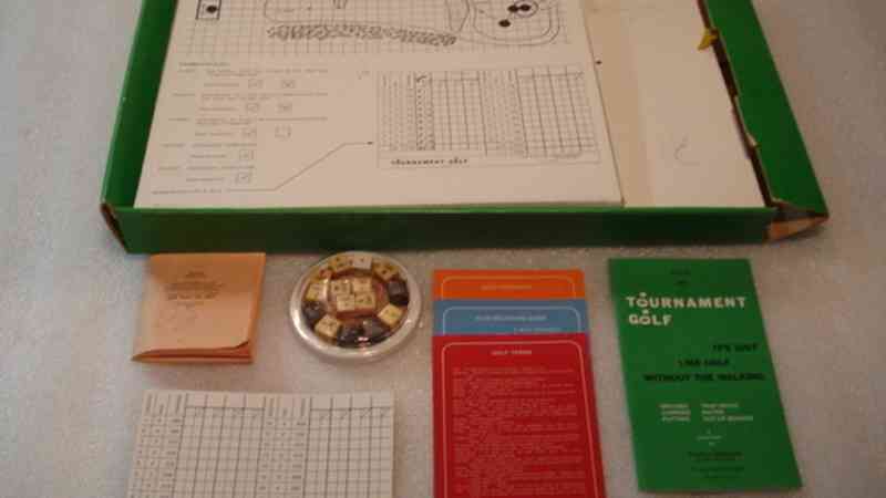 The double-sided board is an overhead view of all 18 holes of the "Green Valley Country Club" (6760 yards, par 71), with greens, traps, rough, woods, and hazards. The board is also ruled off in squares, with each square 20 yards per side on the scale of the holes.