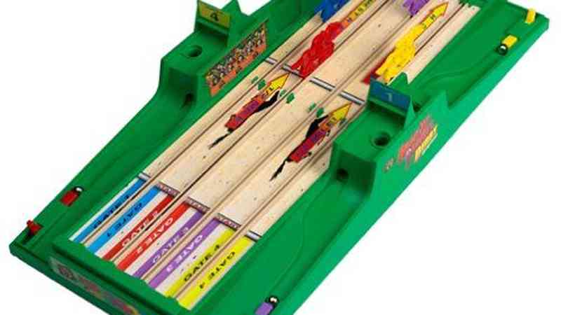 A game of skill and accuracy. You're the jockey! You control the horses speed! The excitement of real horse racing! Endless hours of racing fun! Automatic pop-up finish line! From 2 to 4 players.