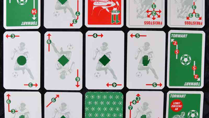 Fussball Fieber is a card game for 2 players. The soccer ball is moved across the playing field using playing cards. The game is played in two halves. Players try to score goals and win with tactical moves such as corner kicks, shots on goal, penalties, free kicks, throw-ins and goalkeeper saves.
