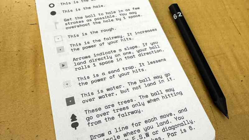 Paper Apps GOLF is a pocket-sized golf game. Each notebook is randomly generated and completely unique. They are 3x5 inches with coil binding, making it a perfect solo roll-and-write travel game!