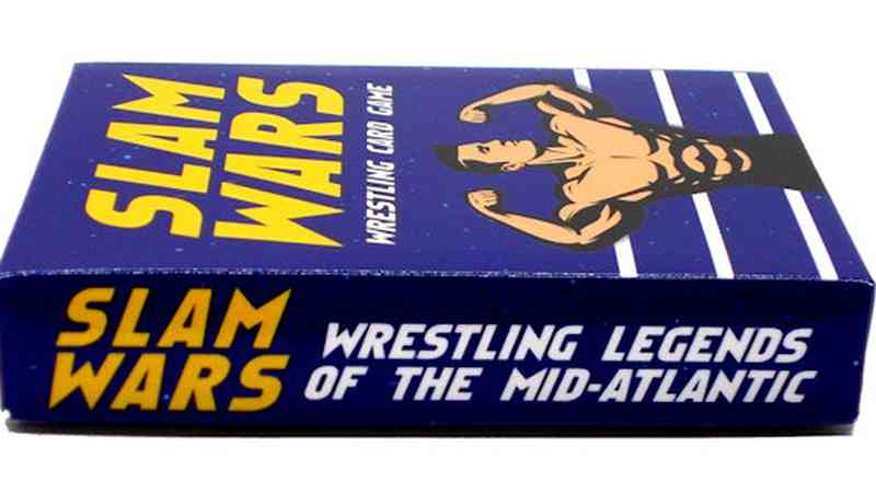 Slam Wars: Wrestling Legends of the Mid-Atlantic comes in a 2-piece full-color dual deck poker box and includes a 20-page full-color instruction guide. There are a total of 90 playing cards: